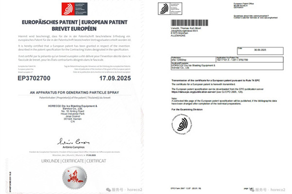 突破技术壁垒!厦门和丰利干冰除污设备有限公司斩获欧洲专利! 2025-10-14