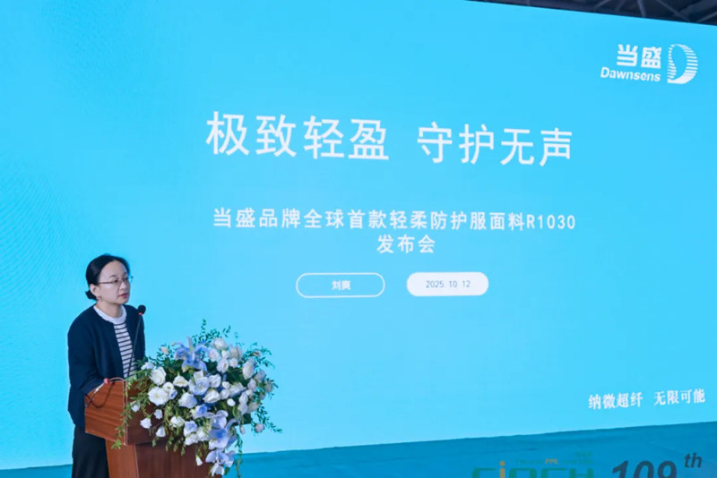 在第109届中国国际劳动用品交易会上,当盛携品牌全球首款轻柔防护服面料产品强势亮相,成为展会现场的焦点之一。展会上,当盛副总经理刘爽女士深入剖析了当前防护服市场的核心痛点,并正式推出当盛全新防护服面料产品R1030及差异化新品“有色系列”,以创新技术重构行业未来。