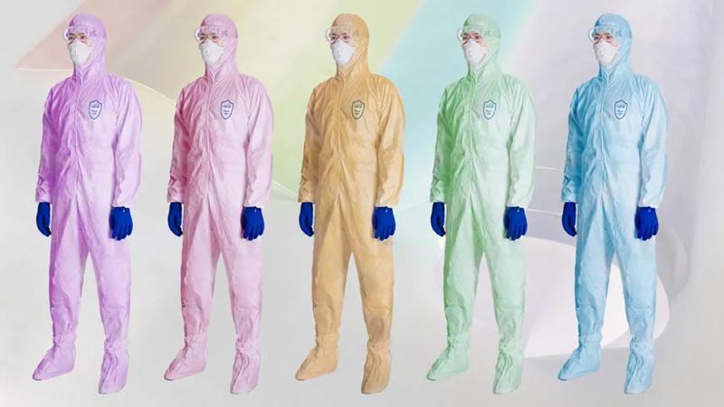 在推出R1030的同时,当盛还带来了一款差异化新品——有色系列防护服。这一系列的最大亮点在于其创新的色彩设计和功能定位。与传统防护服单一的白、蓝、灰色调不同,有色系列采用了鲜明的色彩搭配,如荧光绿、亮橙色和深蓝色等,不仅提升了产品的视觉吸引力,还赋予了个人防护装备江南在线功能性和实用性。